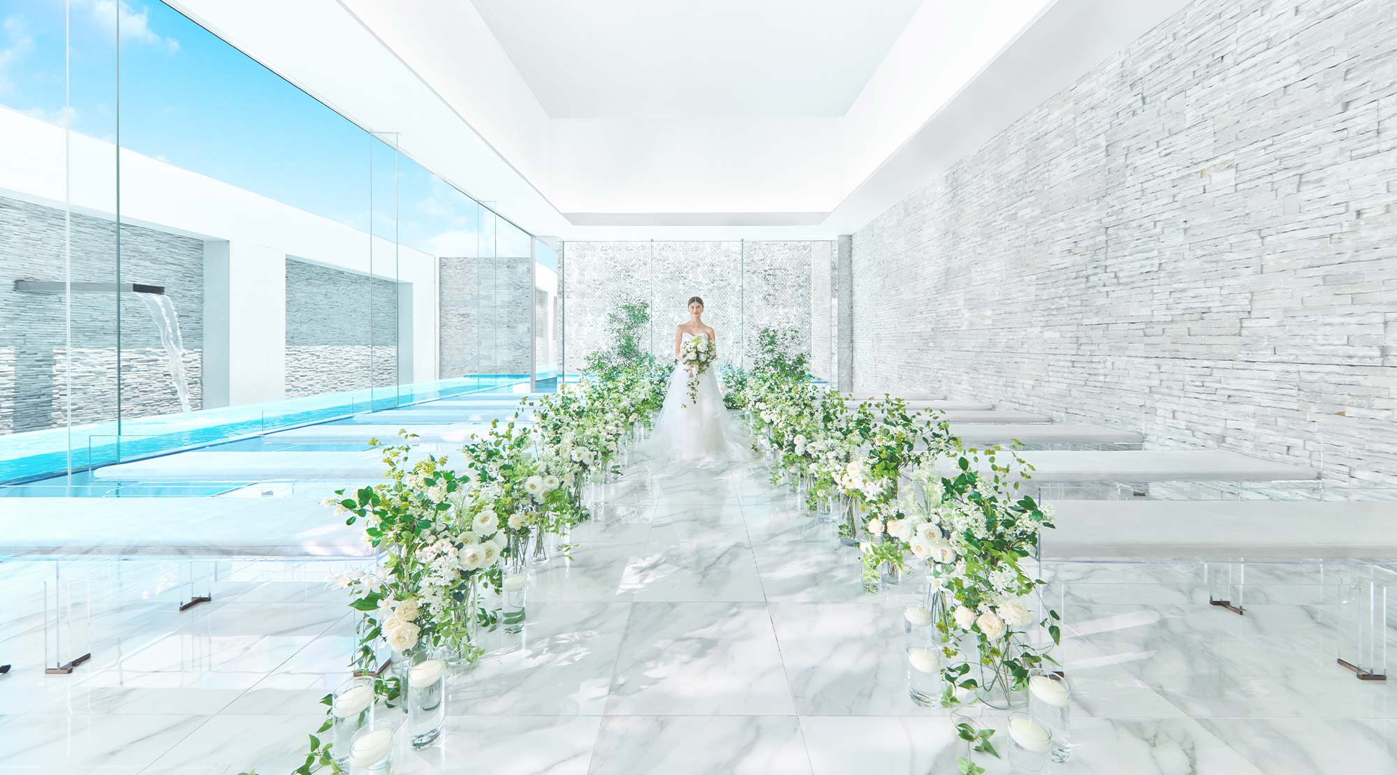 扉の先には降り注ぐ自然光に淡く照らされた大理石のバージンロード。