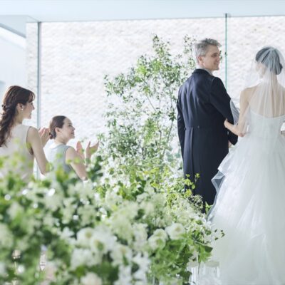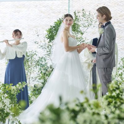 ゲストが「立会人」となり、両親や親族、友人などの親しい人たちの前で結婚を誓う人前式。おふたりらしい挙式を叶えたい方におすすめです。
