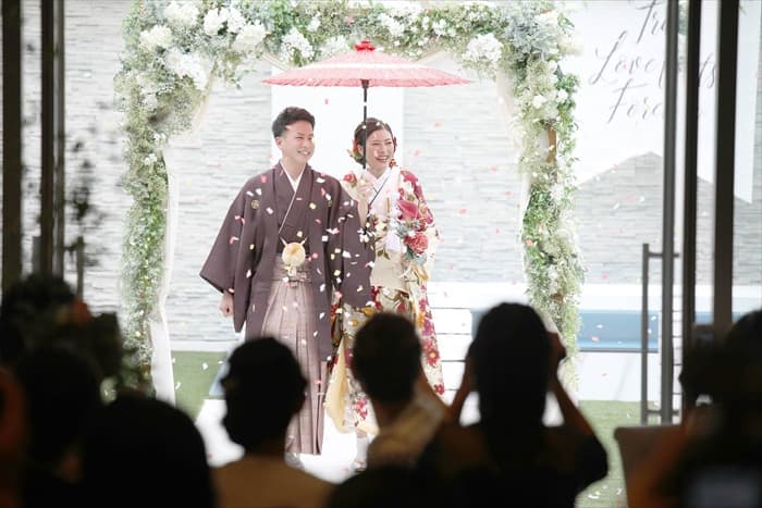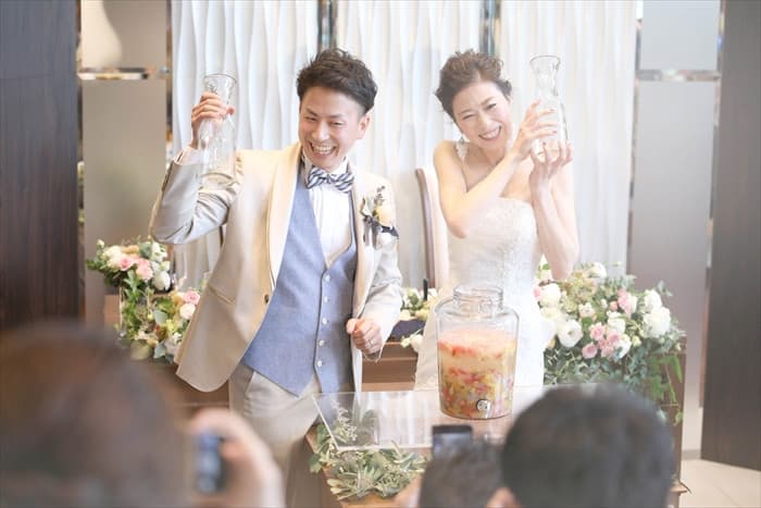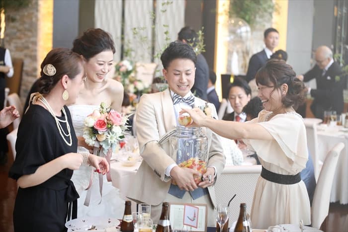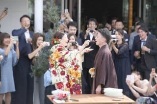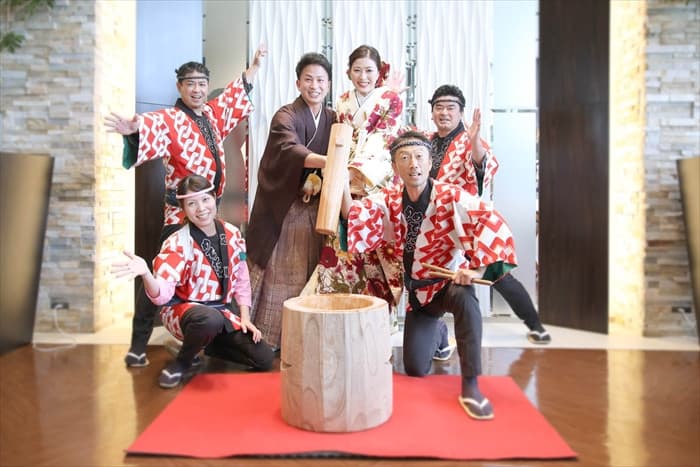 こだわりをあえて言うとするなら、今まで数々の結婚式に列席してきた新婦(笑)の要望で、ありきたりな内容の演出にしたくないというものがありました。クロージングキスや、めでたやの餅つきからの餅バイトなど、少し変わった演出をすることで私たち自身も楽しめて、ゲストの方々にも飽きさせないということを意識しながら、私たちらしい結婚式になるように準備を進めていきました。