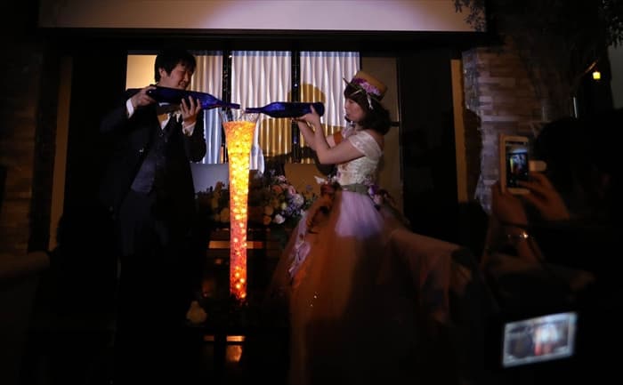 その中でも1番こだわりたかった演出が、大好きなお話の中に出てくる光の名シーン。 難しいお願いにも関わらず、ムービー、音楽、ライトのタイミングもバッチリ。本当に綺麗で夢のようでした。これも沢山音楽を聞いてくださり、練習してくださったたばてぃーやスタッフの皆さんのおかげです。天気もよく、素敵なガーデンで行ったお菓子まき、デザートビュッフェ、お茶漬けビュッフェもとても喜んでいただけました!! 笑いあり、感動ありのこのような最高の思い出となる時間を過ごすことができたのも、スタッフの皆さんのおかげです。