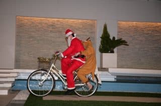 式場を探しはじめてすぐ、私たちはブランベージュ☆ふじなみさんと出会いました!初対面とは思えないほど、会話が弾み、人見知りな彼も、なんと!気を許してたのです!その帰り道、私達は、ブランベージュで幸せ♪になろうと、決めました!打ち合わせでは、いつもナイスなアイディアをくれました!クリスマスだから、新郎新婦自ら、サンタになって、登場しようという私のアイディアに賛同してくれて、スタッフさんの自転車を貸してくれたんです!初めは、自転車で!?って思ったんだけど、当日素敵な飾り付けまでしてくれて、自転車での意外な登場に、会場もすっごく盛り上りました!