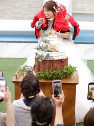 緊張しいの私たちでしたが、結婚式は大大大成功!特に一番こだわったウエディングケーキ(フェイクケーキ)を持って転倒するどっきり演出はとっても盛り上がりました。一緒に盛り上げてくれたスタッフさん達と式の終わりにカーテンコールができたのもいい思い出です。