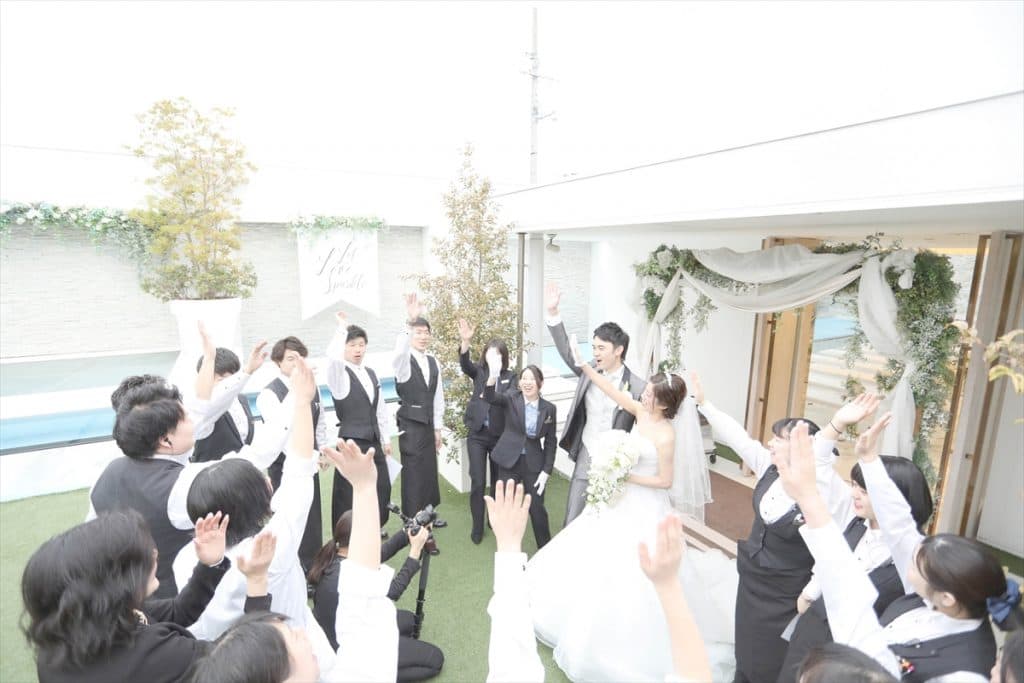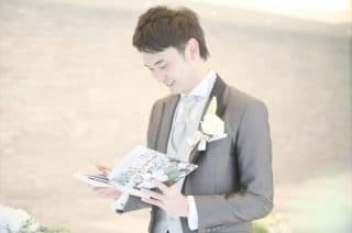 迎えた結婚式当日。緊張よりも、今まで考えてきたことが形になることへのわくわく感が大きかったように思います。新婦からのアルバムサプライズ、落ち着いた雰囲気の中で行った両親との対面、たくさんの新郎生徒から頂いた温かい祝福。挙式前から盛りだくさんでしたが、とても充実した素敵な時間を過ごすことができ、「今日は最高な1日になる!」と確信しました。