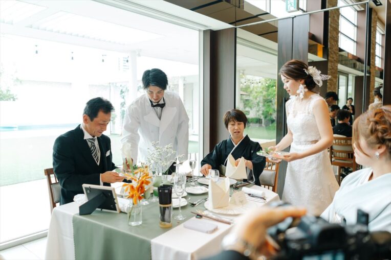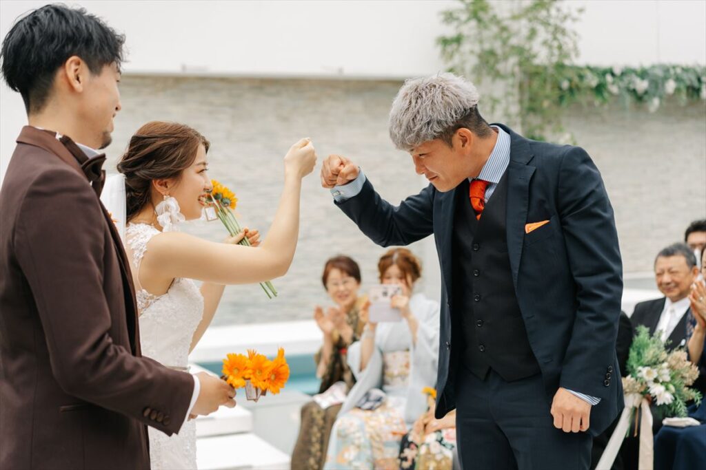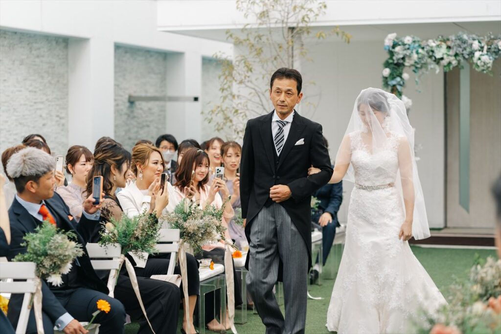 ドレス姿は試着の際に見ていたので泣くことはないと思っていたファーストミートは、チャペルの雰囲気も相まって号泣してしまい、ファミリーミートはそれよりも号泣しました。普段、感謝の気持ちを伝える機会があまりない両親にも、照れや恥ずかしさもなくまっすぐに伝えることができてよかったです。こういう機会を設けてくれてとても嬉しかった、と両親からも大絶賛でした!