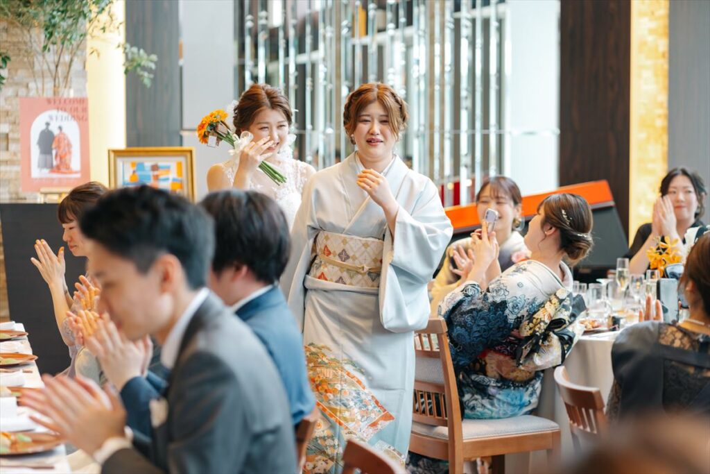 結婚式は自分たちが主役なので、ゲストの方たちに楽しんでもらえるかどうかが心配でしたが、終わった後に「最高だった」「今まで参加した結婚式で一番だったよ」「今度挙げる結婚式の参考にさせてもらうね」など嬉しい言葉を沢山いただいて、私たちの想いが形になったんだなぁと実感し、とっても嬉しかったです。離れていてあまり会えていなかった友人にも会えて、思いもしない方々が涙してくれて、一瞬一瞬がたいせつな宝物になりました。