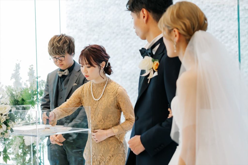 いつもお仕事がいそがしい中、お打ち合わせに来てくださって結婚式準備もおふたりで協力して前もって沢山準備してくださいました。そんなお人柄のおふたりだからこそ、当日もおふたりのことが大好きで温かいゲストの皆さまが集まってきてくださいました!