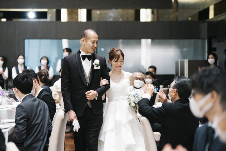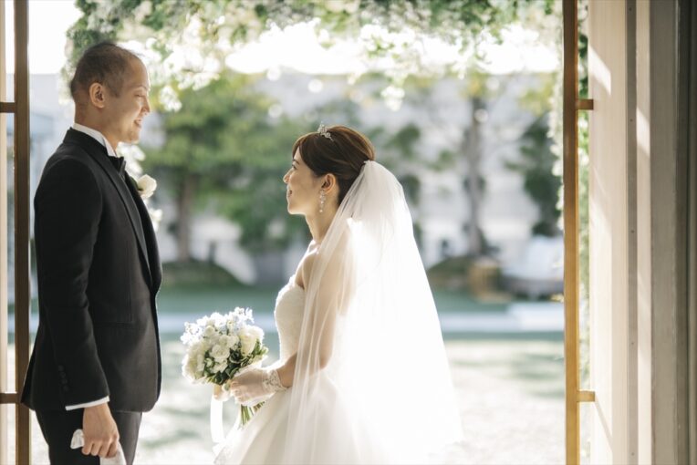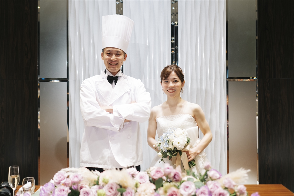 新婦がPJ(サービススタッフ)としてアルバイトしていたのがきっかけです。ブランベージュで働くうちに、「いつかここで結婚式をしたい!」と思っていました。会場見学のため久しぶりにブランベージュに行くと、支配人の大さんはじめ、懐かしのプランナーさんやシェフが温かく迎えてくれました。新郎も会場を気に入り楽しんでくれたので、ブランベージュで挙げることを決めました。
