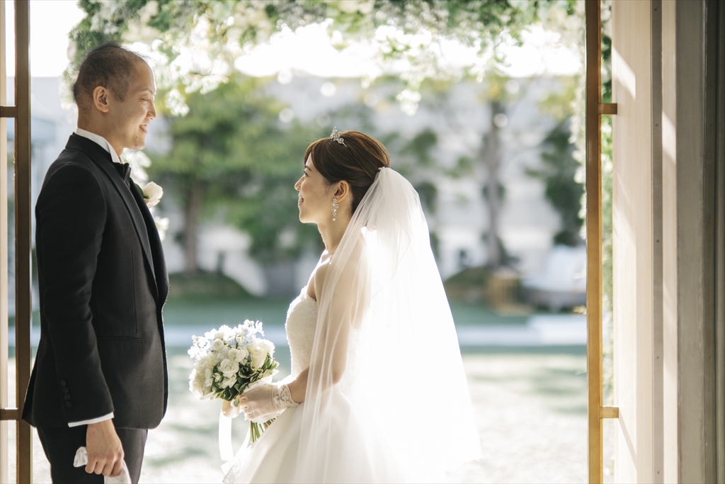 物腰が柔らかくとても優しい警察官のよしみちさんと、周りから愛される心優しいさきさん。学生時代にさきさんがブランベージュでアルバイトをしていた事から見学に来てくださいました。担当プランナー自身もアルバイトとしてさきさんと一緒に働いていた事もあり、とっても楽しみに今日まで準備を進めてきました。