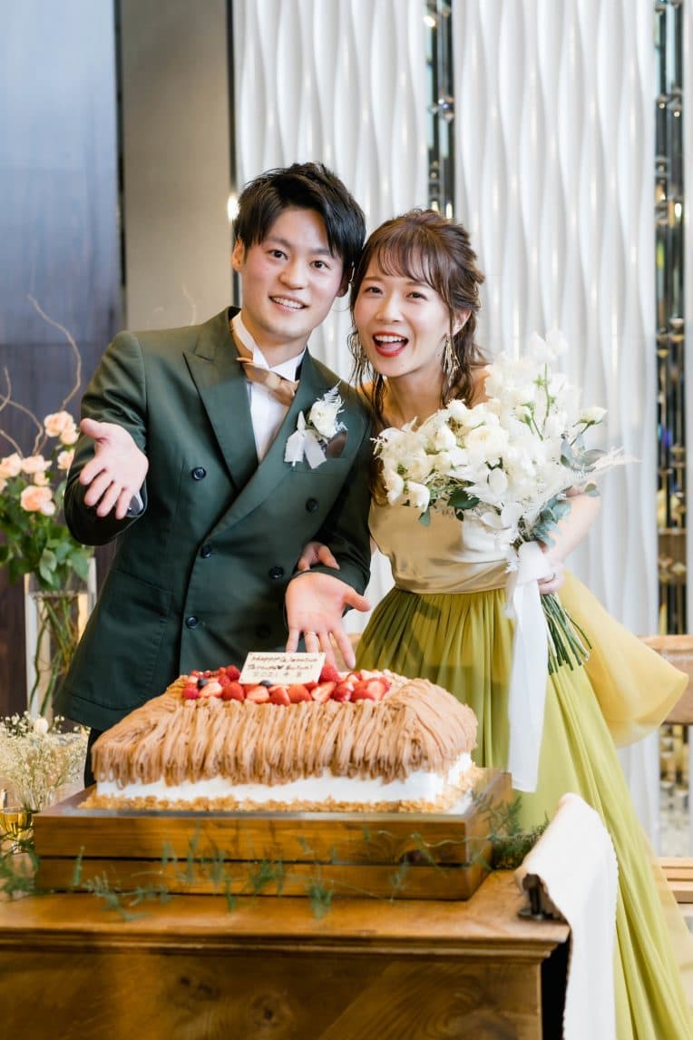 そして、おふたりが大好きだということで決定した【モンブランのウエディングケーキ】は見た目も迫力満点!ケーキ入刀前にはおふたりがケーキを完成させる演出もあり、まさにオーダーメイドな結婚式となりました。(ケーキ登場の際には、私とパティシエが大好きな曲をかけてくださるというお心遣いまで・・・嬉しくて思わず踊ってしまいました。笑)