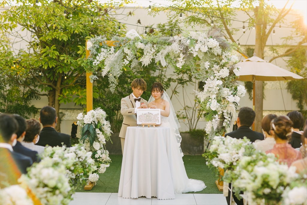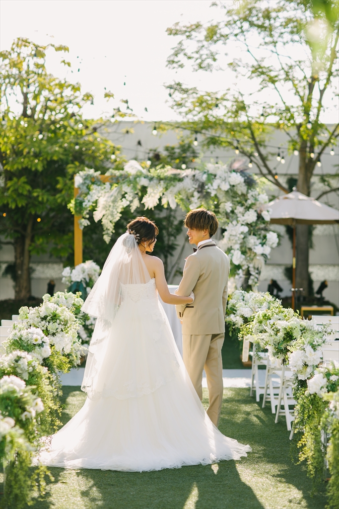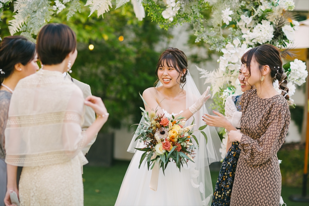 ●《ウェルカムパーティ》挙式の緊張をほぐす、写真や歓談を楽しむガーデンパーティ