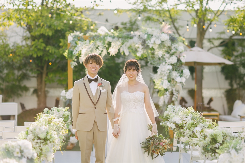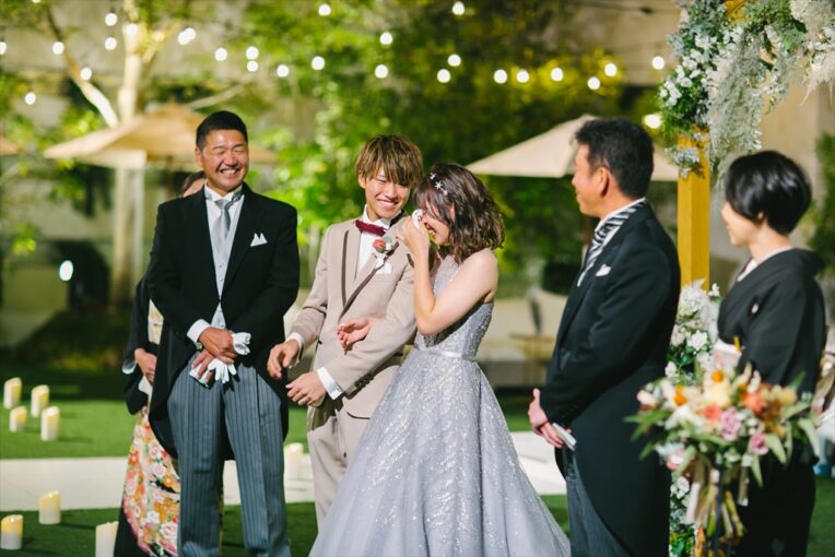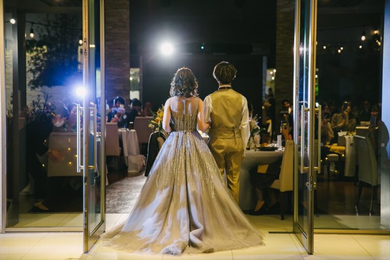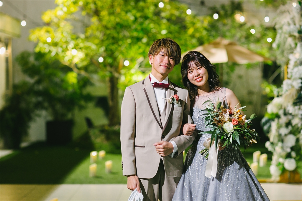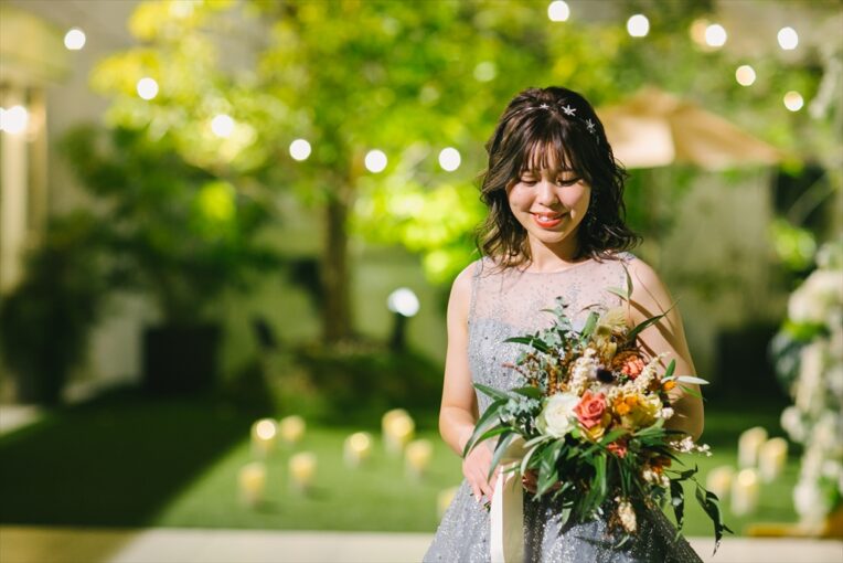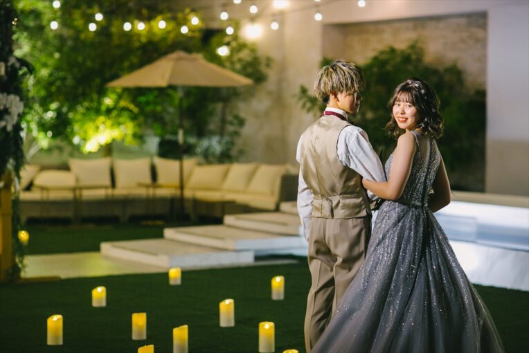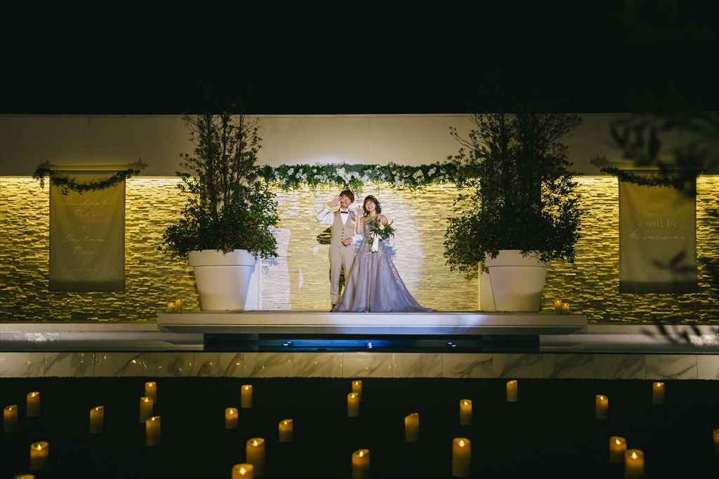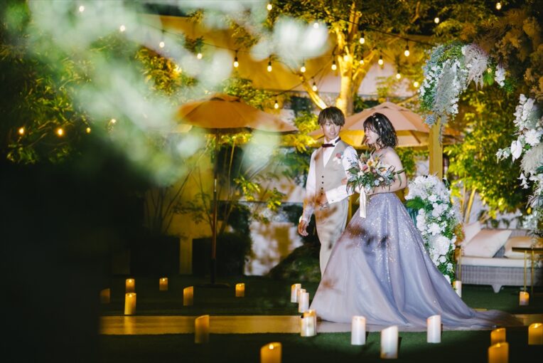 ●《夜ならではの演出》お色直し後はキャンドルを並べたガーデンから入場♩