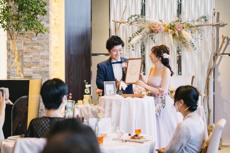 普段からとても穏やかで優しい雰囲気のおふたりですがこの日はたいせつなゲストの方々から祝福のお言葉をいただき、たくさんの笑顔を見せてくださいました。