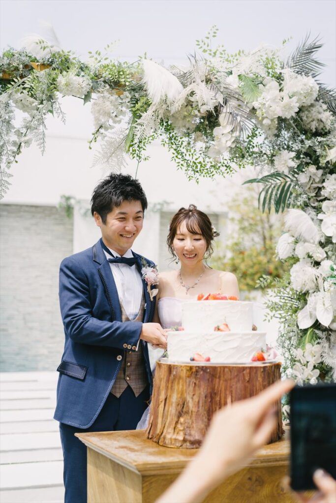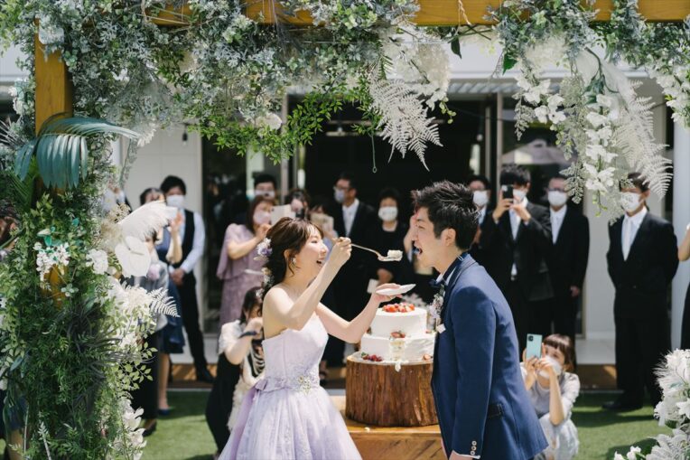 王道がお好きなさきさんでしたがお菓子まきでゲストが楽しめるイベントを行ったりウェディングケーキセレモニーをガーデンで行ったりしました♪