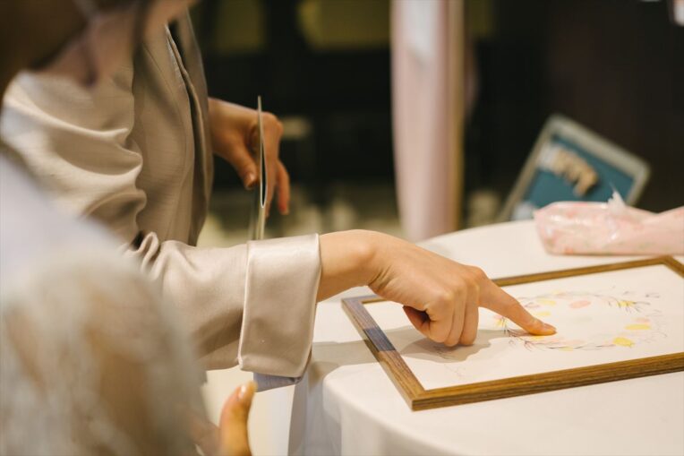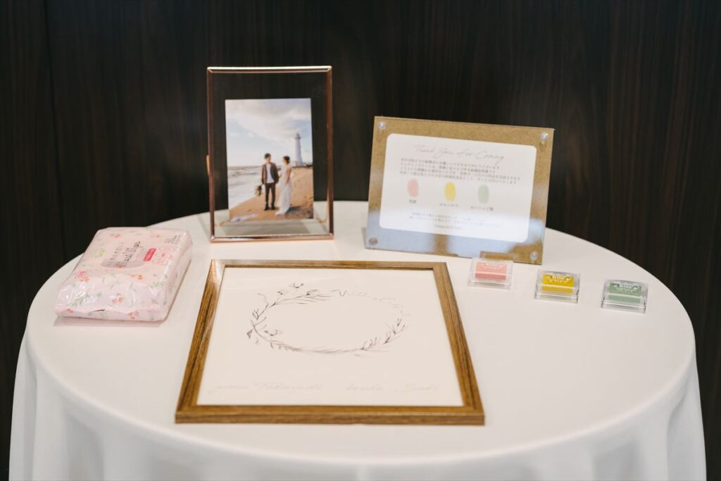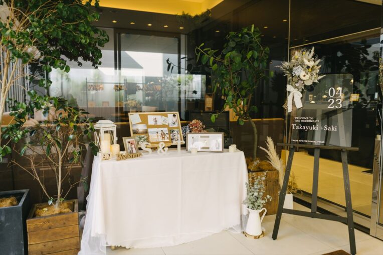また、挙式は教会式で執り行われたのですがせっかくならゲストの方にも協力していただいて何かを作りたいという事でウェディングツリーをご用意されました。ゲストの皆様にも参加をしていただき、おふたりに披露宴の中で完成していただいました。