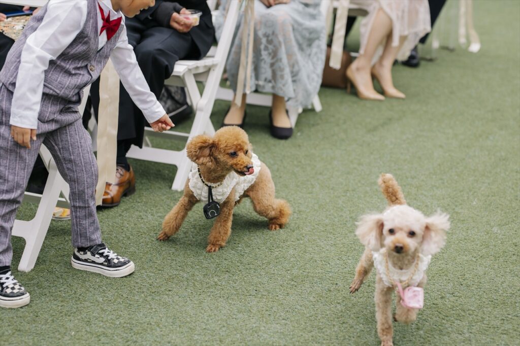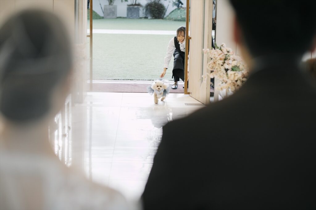 更にリングドッグのリハーサルも何度も行えるので、会場スタッフにも懐いた状態で当日を迎えられます。大切なご結婚式の準備から当日まで、かけがえのない特別な時間もペットと共にお過ごしいただけます。