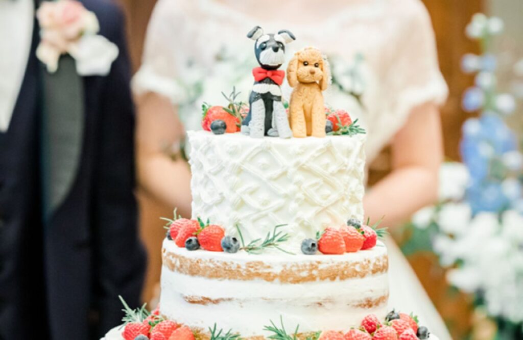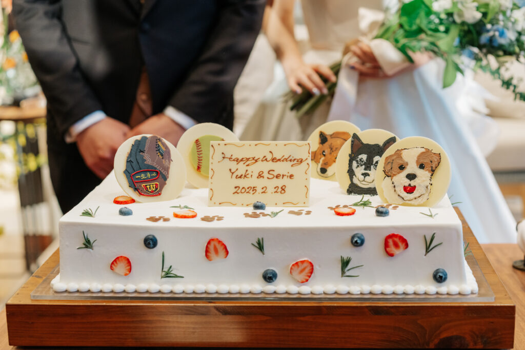 生地から手作りのウエディングケーキは、パティシエと直接打ち合わせをして、マジパンやアイシングクッキーで可愛いペットを表現できます♪愛犬用にケーキの持ち込みも可能です!