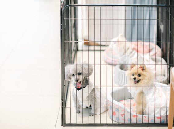 式場内のどの場所でもペットの待機 OK!雨の日も安心◎わんちゃんの大きさや使う場所に合わせてゲージサイズのアレンジも可能です♪